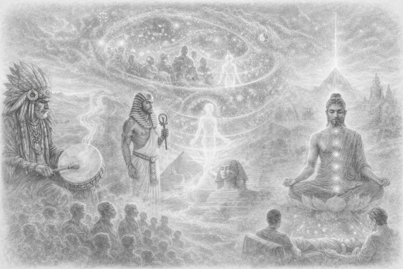 Les guérisseurs et les sages de ces traditions utilisaient ces états de conscience pour identifier l’origine invisible de certaines souffrances et rétablir l’équilibre de la personne.